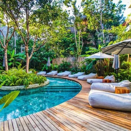 Zama区的5 Star Luxury Condo-Infinity + Cenote Pools-Spa! 图卢姆距Tulum National Park仅2.4公里,设有跳水池 和花园等休闲设施. 公寓还设有厨房,它配有冷冻机,厨具 和玻璃器具.